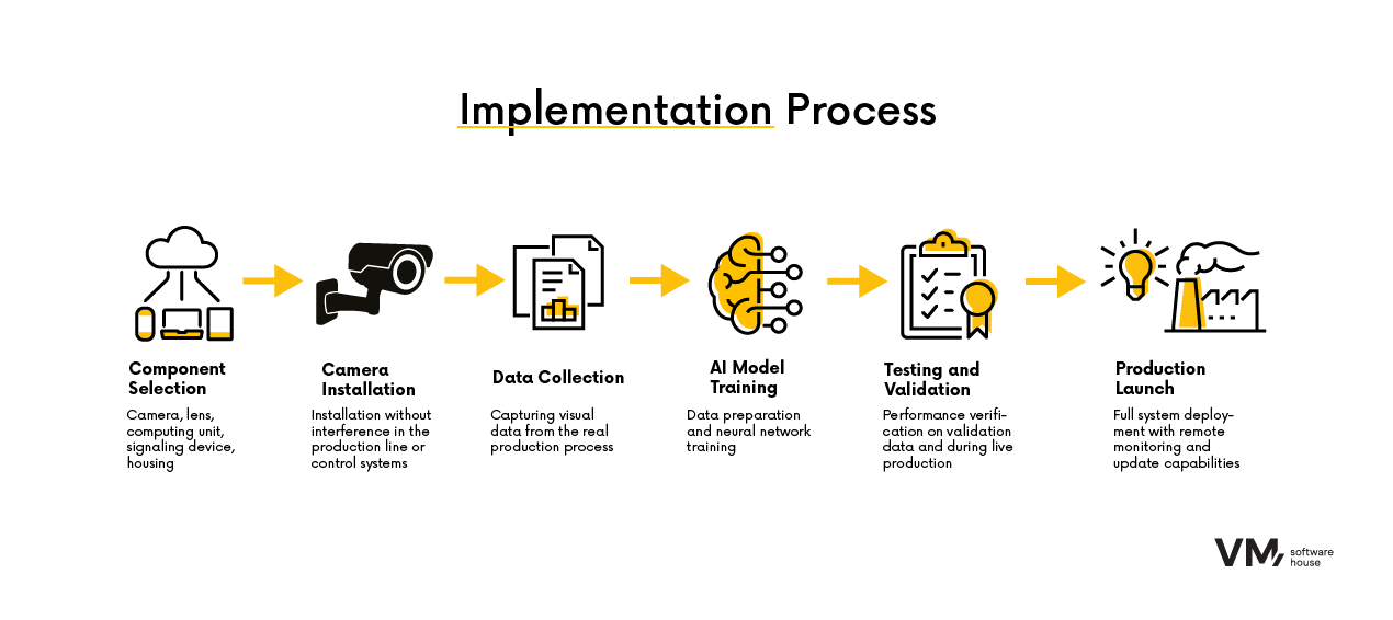 Es wurde ein „Kamera-als-Sensor“-Ansatz gewählt – eine nicht-invasive Produktionsüberwachung mithilfe einer einzelnen Kamera und fortschrittlicher KI- und Machine-Learning-Software. Die Umsetzung erfolgte in mehreren Phasen: